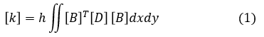 hは板厚,[B]は変位-ひずみマトリクス,[D]は応力-ひずみマトリクスです。
