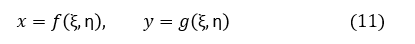 ここで,座標変換(変数変換)をします。x,y を ξ,η の関数とします。次式です。