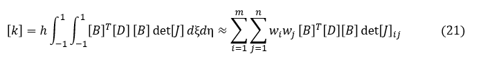 ガウス・ルジャンドルの数値積分を使うと要素剛性マトリクス[k]の近似値は次式となります。