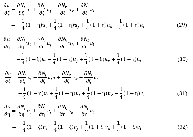 (17)式を計算しますが,その成分∂u/∂ξ,∂u/∂η,∂v/∂ξ,∂v/∂ηを計算しておきましょう。