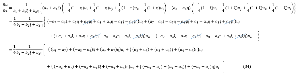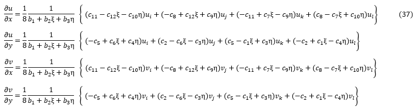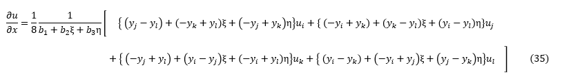 (35)式は以下となります。同様の手順で計算すると∂u/∂y,∂v/∂x,∂v/∂yは以下となります。