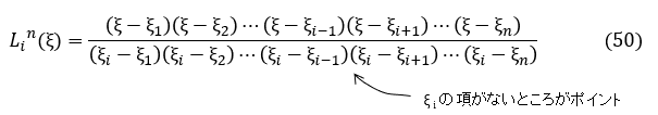 これは次式で表されます。ラグランジュ型の補間多項式と呼ばれています。