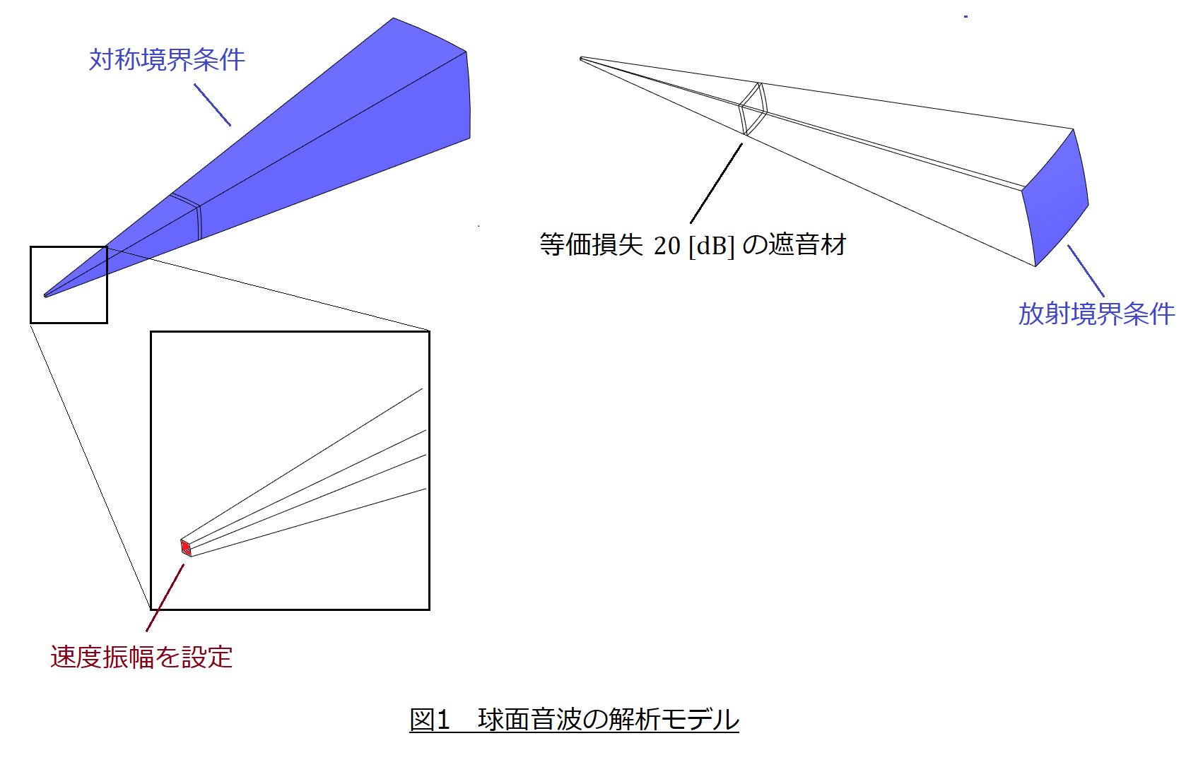 球面音波の解析モデルを図1に示します。