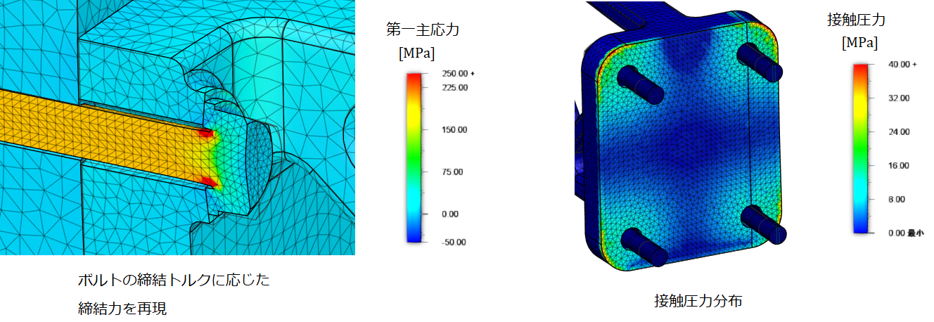 ボルトに発生する軸力を再現していますので,ボルトの応力分布とベース板との接触圧力が計算できております。